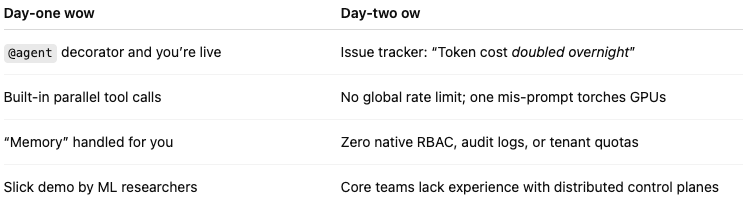 Browse Hacker News or GitHub and you’ll find war stories: agents deadlocking, losing state mid-conversation, or requiring full restarts to pick up new environment variables. These frameworks are brilliant for creating agents, but they treat observability, versioned roll-outs, and policy enforcement as afterthoughts.