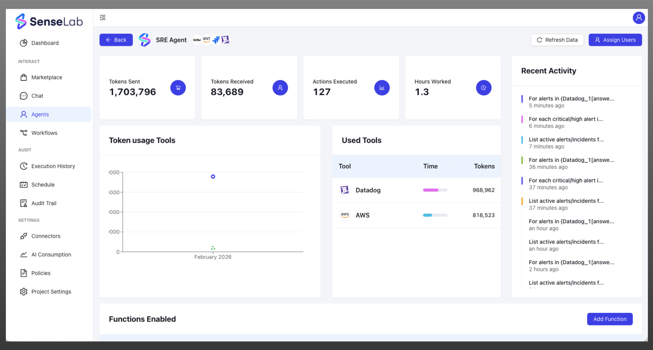 SenseLab provides clear visibility into each agent’s usage and costs. Advanced cost controls—such as setting thresholds, receiving alerts, and tracking resource utilization—will be available soon in our Enterprise version.