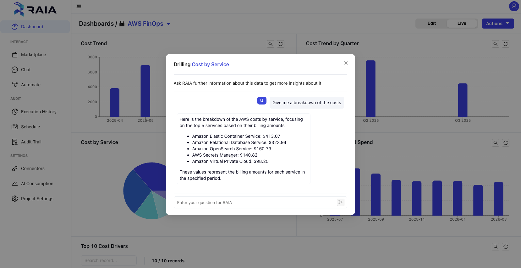 Agents track costs, utilization, and ownership continuously, not in batch reports.